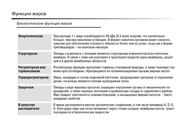 Таким образом, жир выполняет различные функции, и он совершенно необходим для нормальной деятельности организма.
