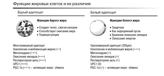 Таким образом, бурый жир создан для того, чтобы расходовать энергию общих жировых запасов, превращая ее в тепло. Белый жир — хранитель этой энергии на случаи длительного голода и холода.